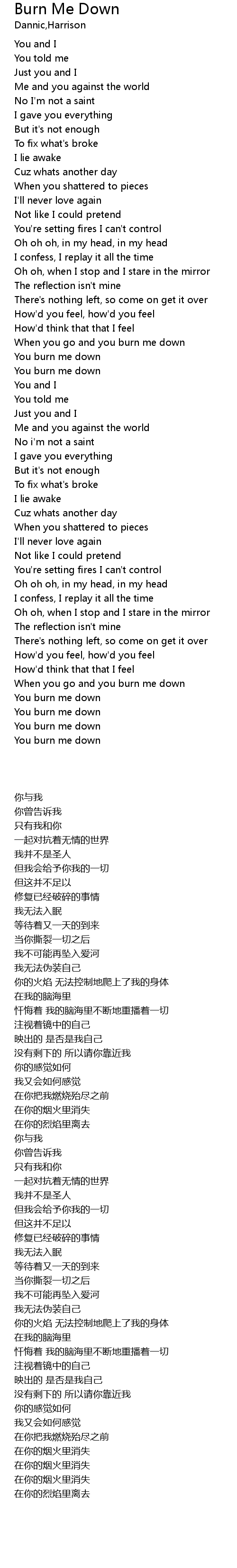 You burn me down |