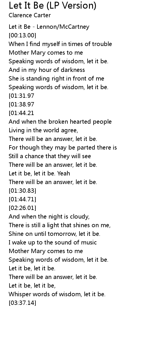 [00:00.00] Let it Be - Lennon/McCartney