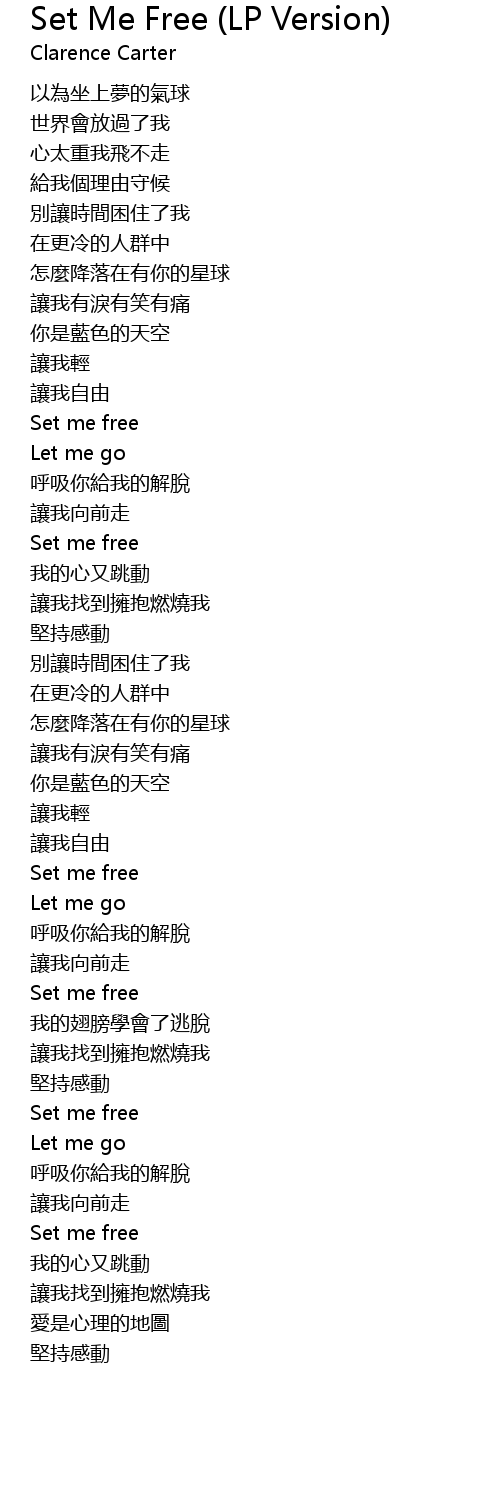 | 歌曲 | Set Me Free (LP Version) |