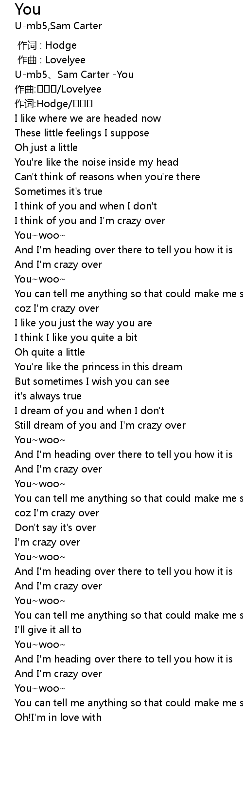 | [00:45.847] | I think of you and I' m crazy over |