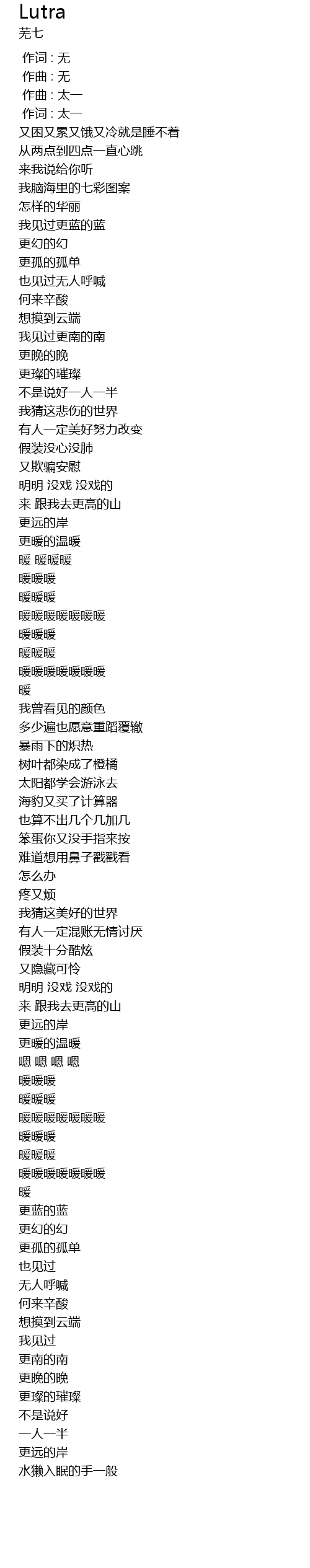 | [00:01.000] | 作词 : 太一 |