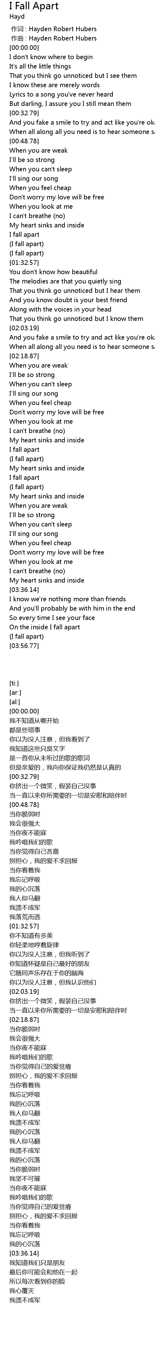 | [02:58.41] | (I fall apart) |