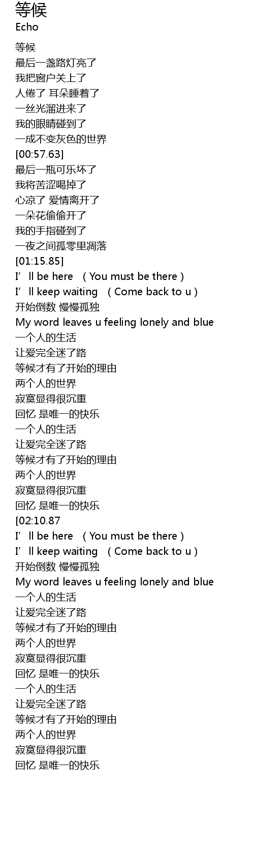 | [02:33.98] | I’ll keep waiting (Come back to u) |