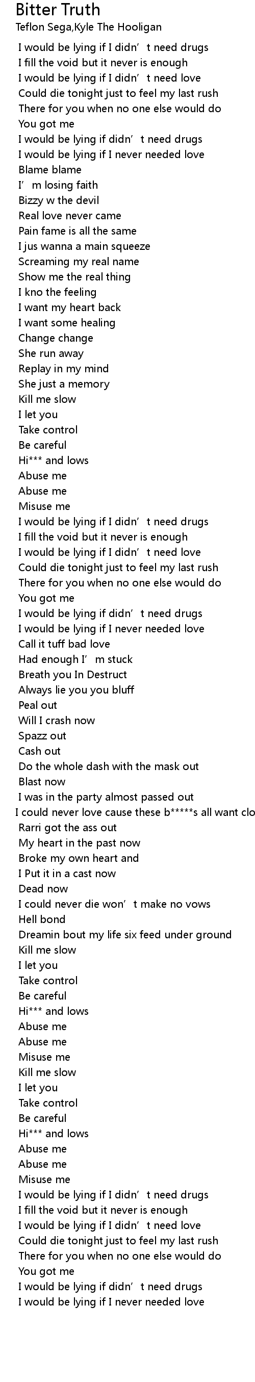 | [02:00.280] | I could never love cause these b*****s all want clout now |