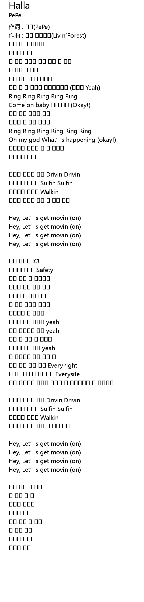 作词 : 페페(PePe) |