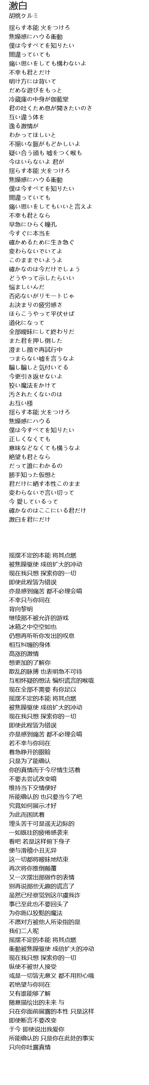 | [02:25.36] | 衝動被焦躁驱使 成倍扩大的冲动 |