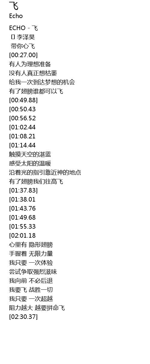 | [00:00.00] | ECHO - 飞 |