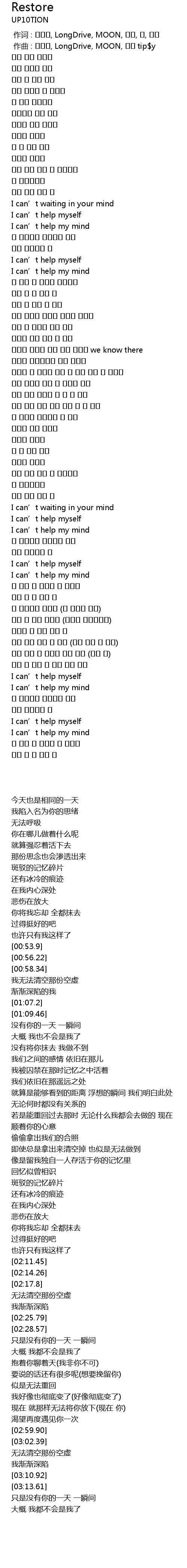 | 歌曲 | Restore |