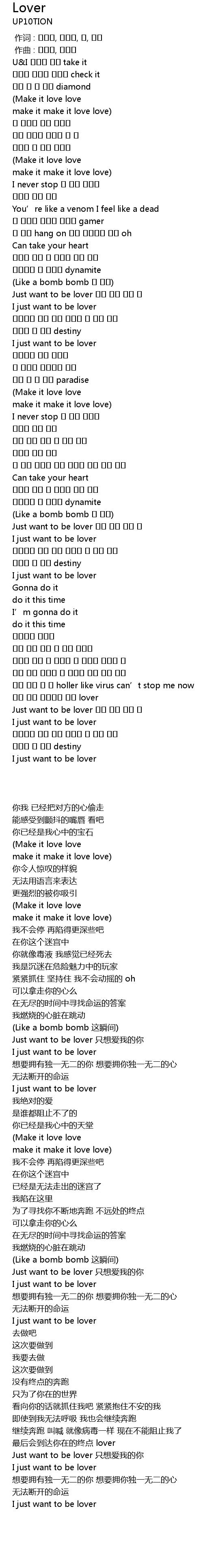 | [02:06.53] | Just want to be lover 나만 갖고 싶은 너 |