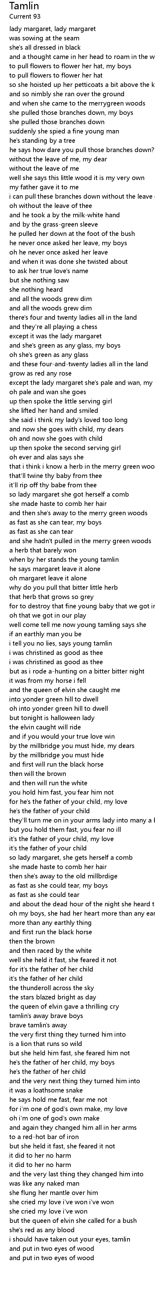 Tamlin 歌词