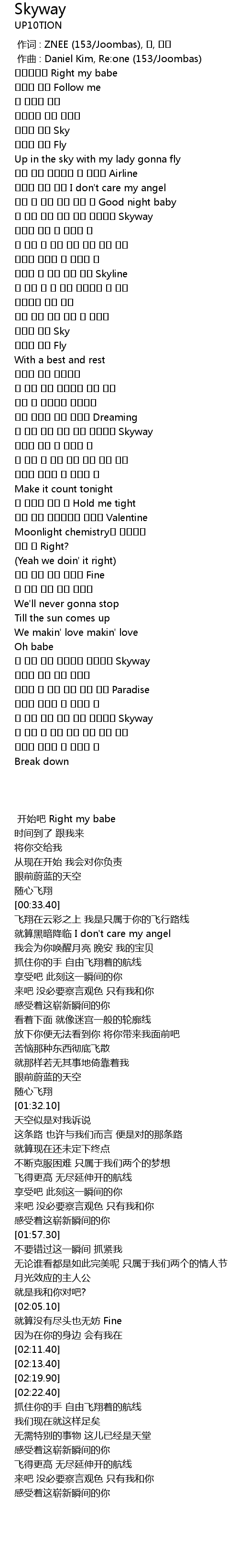 | [01:41.50] | 더 높이 날아 끝도 없이 펼쳐지는 Skyway |