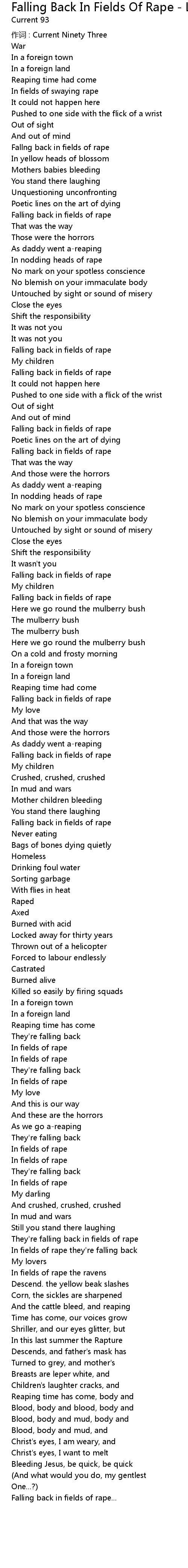 | 歌曲 | Falling Back In Fields Of Rape - Live |