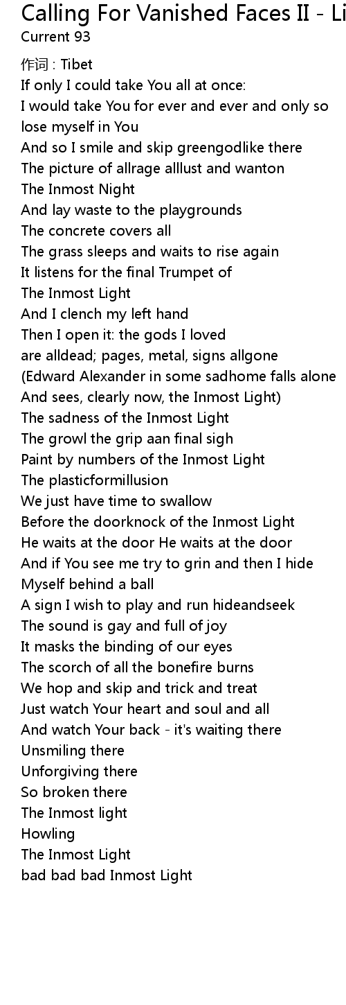 | 歌曲 | Calling For Vanished Faces II - Live |