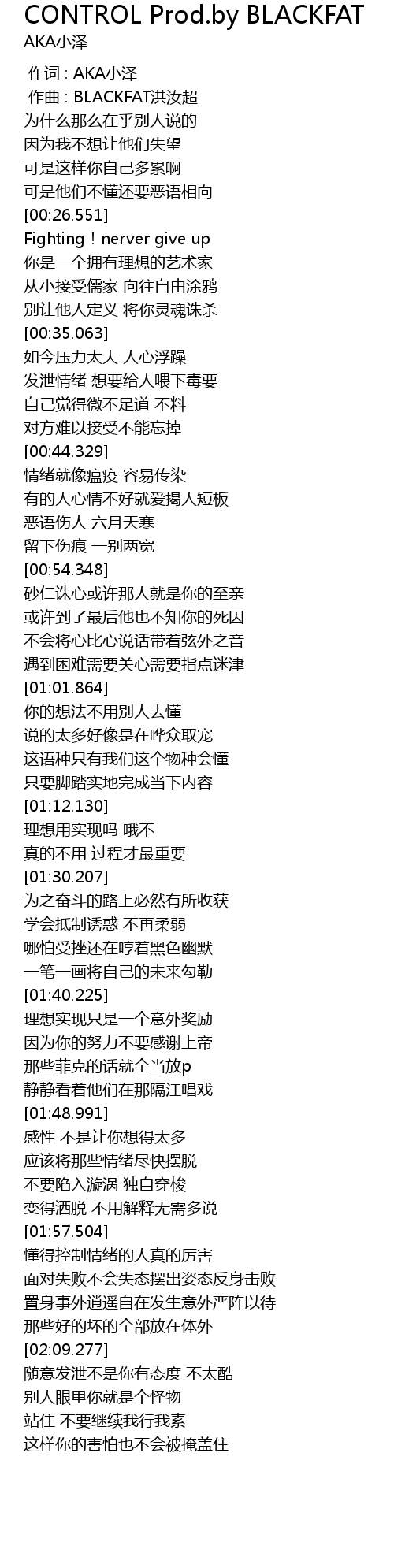 | [00:01.000] | 作曲 : BLACKFAT洪汝超 |