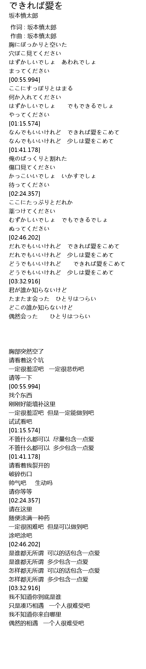 | [03:19.344] | どうでもいいけれど できれば愛をこめて |