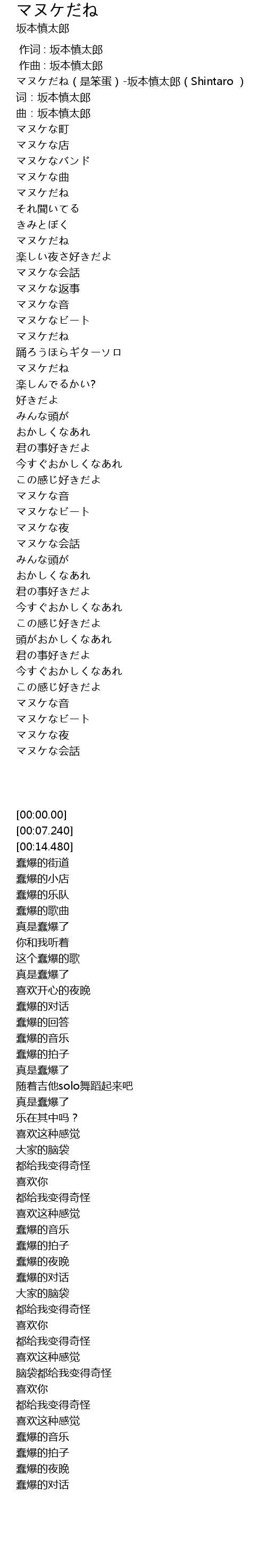 | [00:00.00] | マヌケだね(是笨蛋)-坂本慎太郎(Shintaro ) |