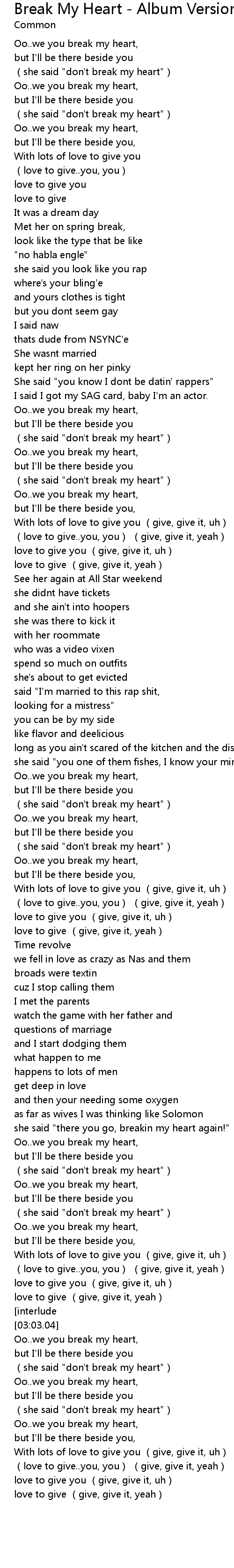 | 歌曲 | Break My Heart - Album Version (Explicit) |