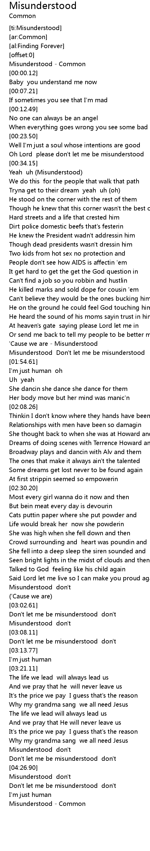 [00:00.12] Misunderstood - Common