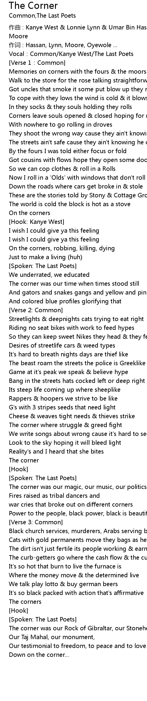 | zuo qu : Kanye West Lonnie Lynn Umar Bin Hassan Abiodun Oyewole Leon Moore | |
