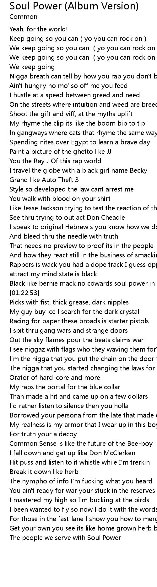 | [01:18.02] | Black like bernie mack no cowards soul power in the words we rap |