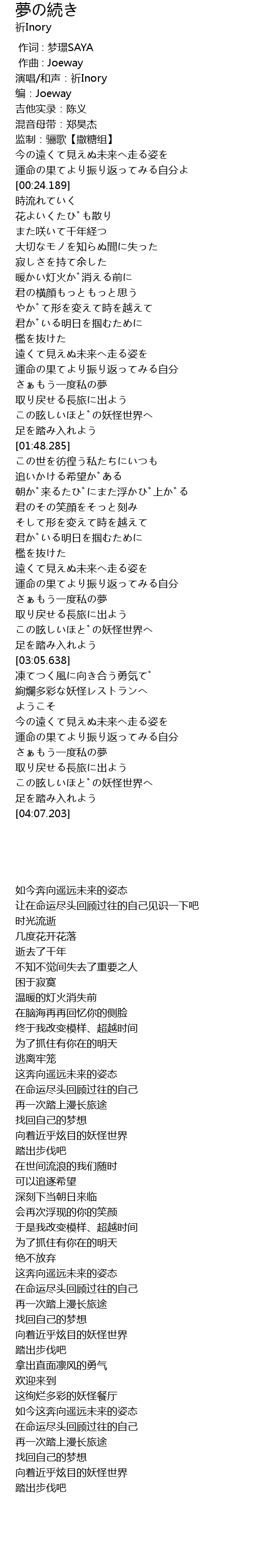 | [03:55.287] | この眩しいほどの妖怪世界へ |