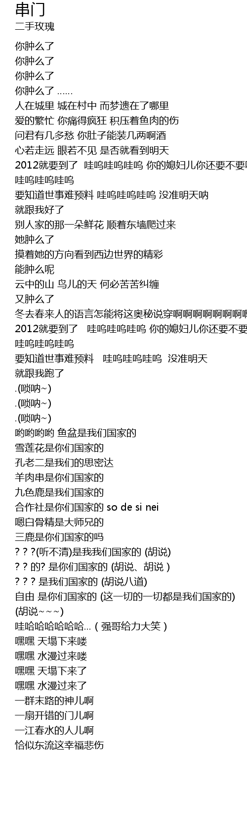 | [01:22] | 2012就要到了 哇呜哇呜哇呜 你的媳妇儿你还要不要呢 哇呜哇呜哇呜 |