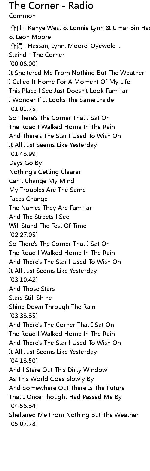 | 歌曲 | The Corner - Radio |