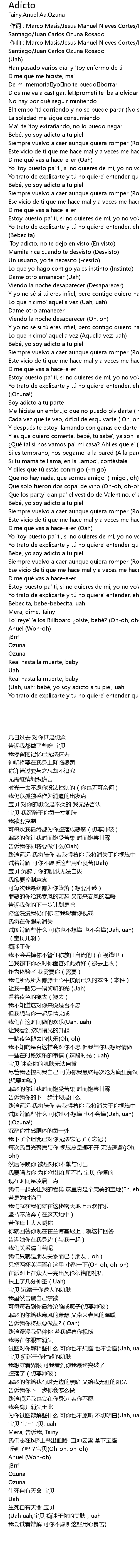 | [00:49.66] | Bebé, yo soy adicto a tu piel |