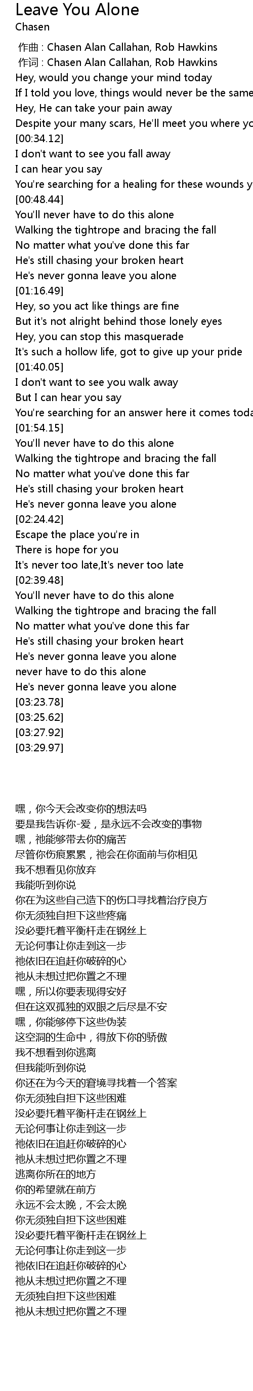 | [03:01.11] | He' s never gonna leave you alone |