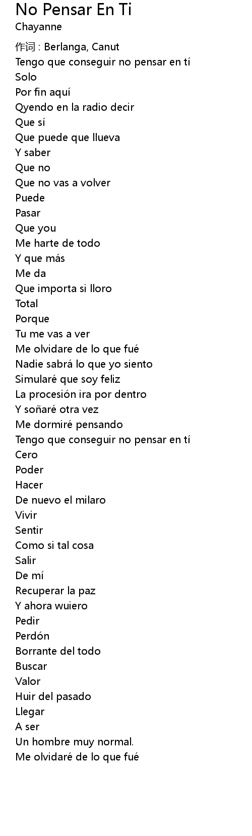 | 歌曲 | No Pensar En Ti |