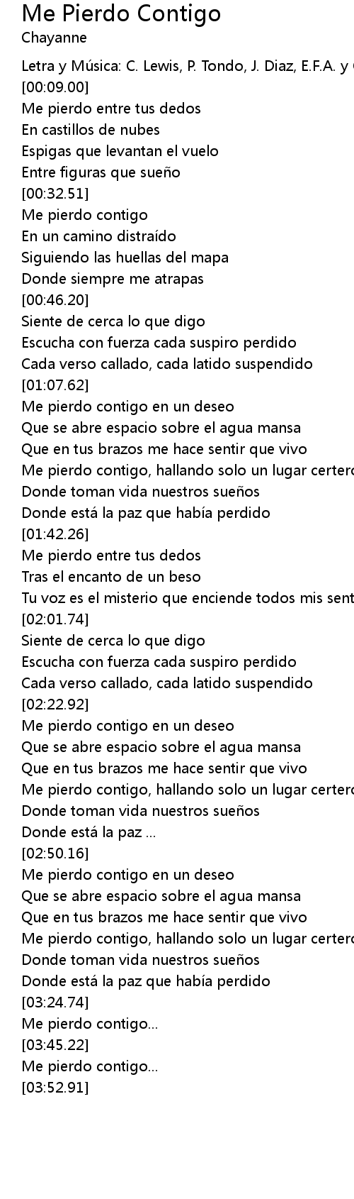 | [00:05.00] | Letra y Música: C. Lewis, P. Tondo, J. Diaz, E.F.A. y C. Celles |