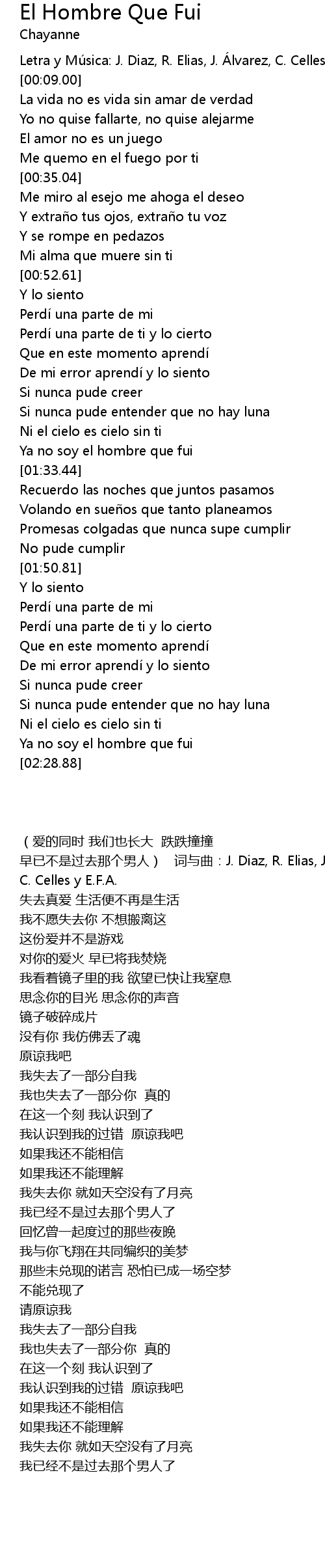| [02:25.44] | Ya no soy el hombre que fui |