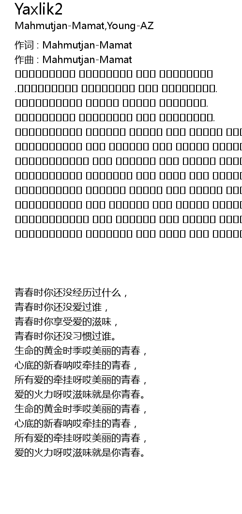 | 作词 : Mahmutjan-Mamat | |