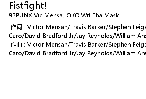 | [00:00.00-1] | 作词 : Victor Mensah/Travis Barker/Stephen Feigenbaum/Andrew De Caro/David Bradford Jr/Jay Reynolds/William Anspach |