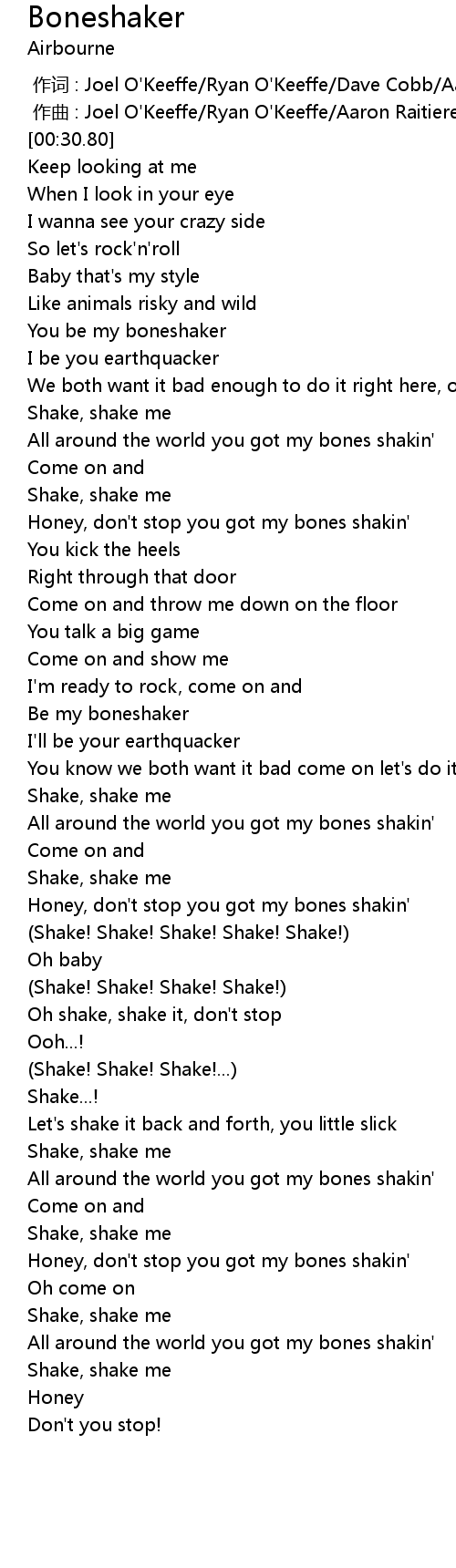 | [00:45.37] | You be my boneshaker |