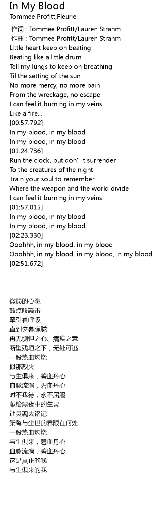 | [00:59.293] | In my blood, in my blood |