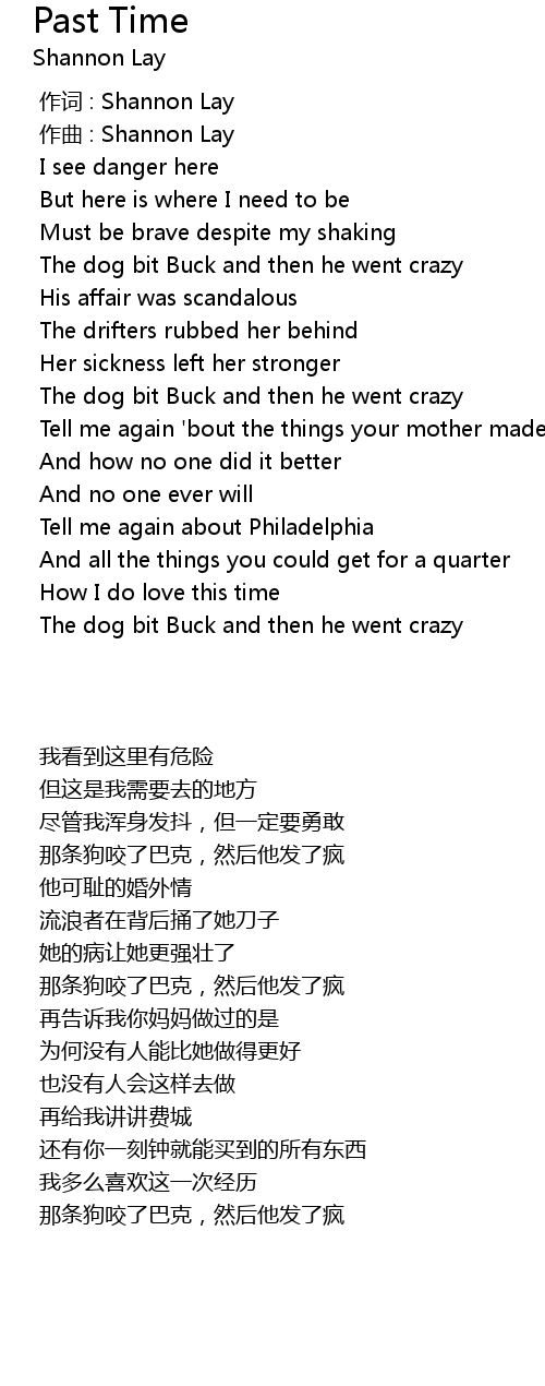 | [00:00.000] | 作词 : Shannon Lay |