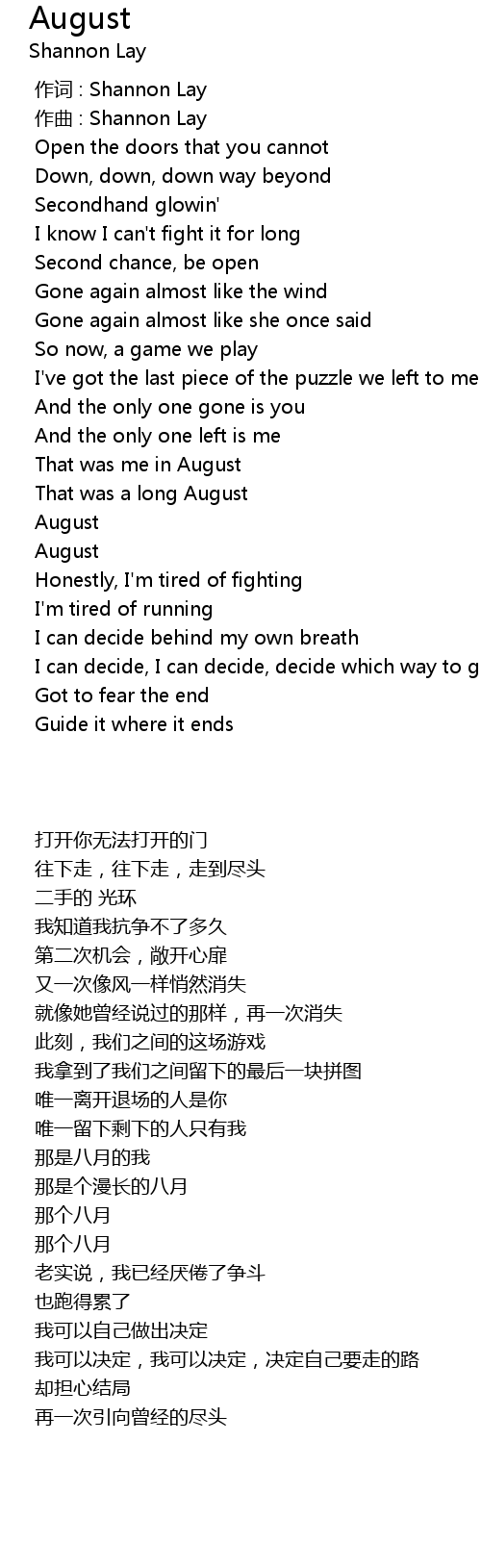 | [00:01.000] | zuò qǔ : Shannon Lay |