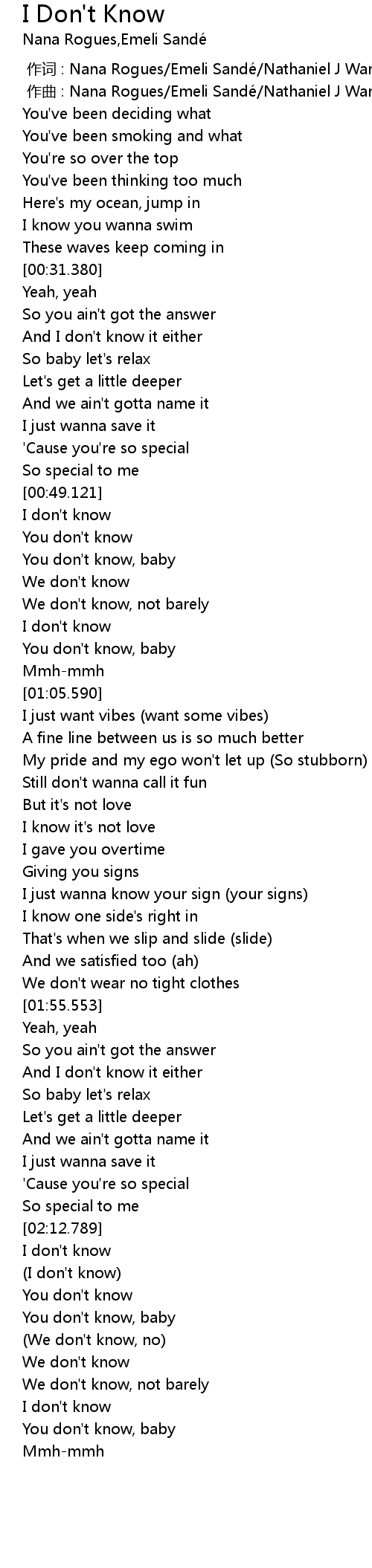 | [00:00.000] | zuò cí : Nana Rogues Emeli Sandé Nathaniel J Warner |