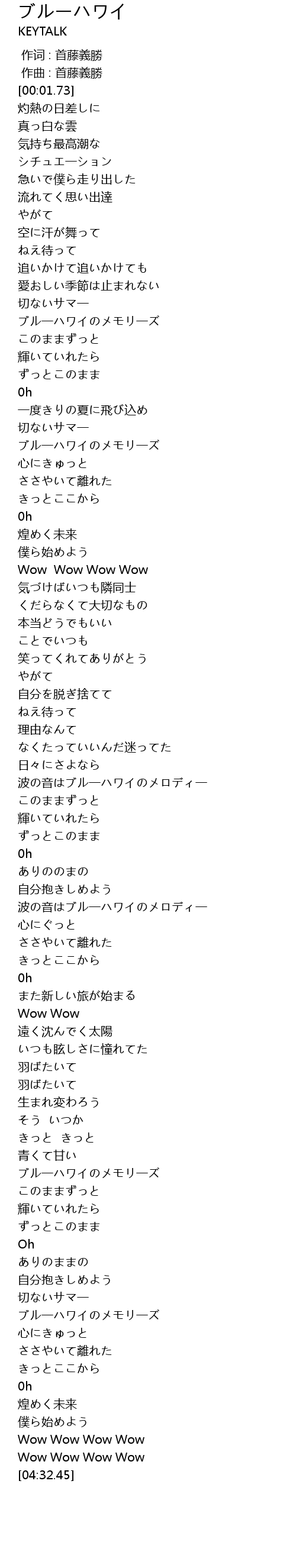 | [03:14.86] | ブル一ハワイのメモリ一ズ |