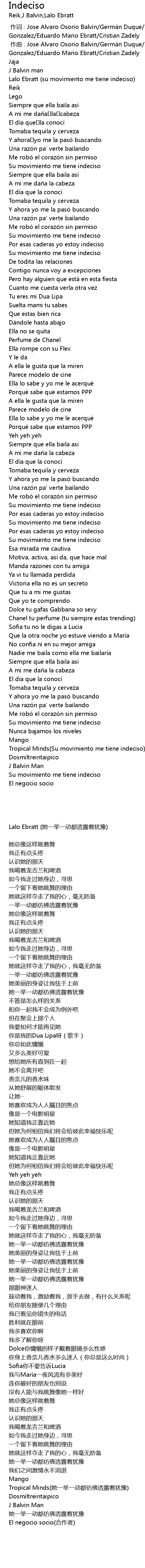 | [00:00.00] | 作词 : Jose Alvaro Osorio Balvin/Germán Duque/Felipe Gonzalez/Eduardo Mario Ebratt/Cristian Zadely |