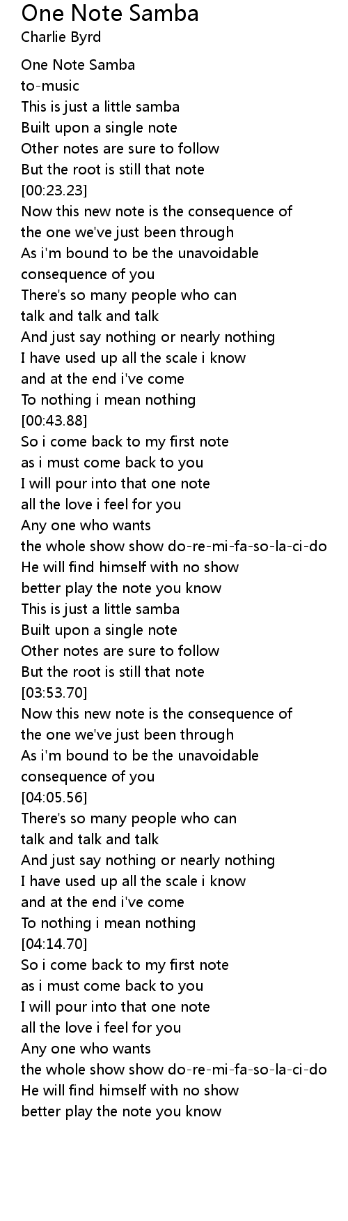 [00:06.25] One Note Samba