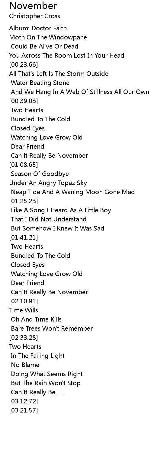 [02:04.76] Can It Really Be November