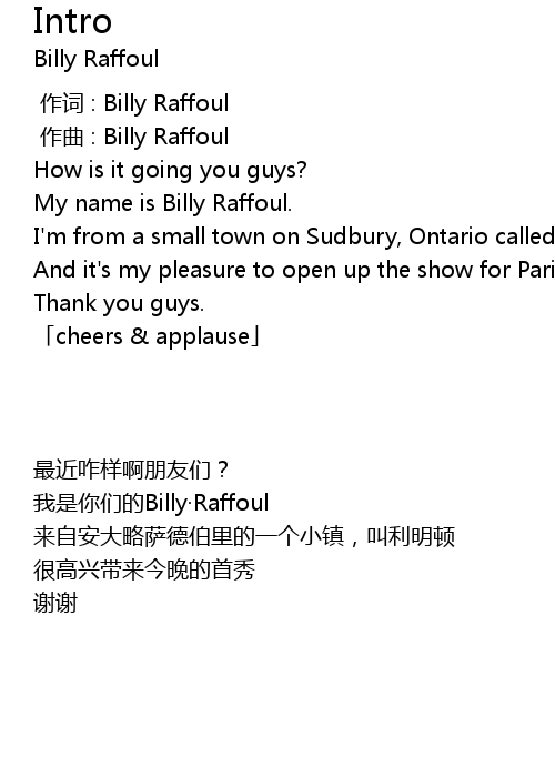 | [00:10.348] | 我是你们的Billy·Raffoul |