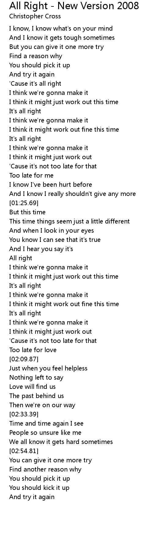 'Cause it's all right |