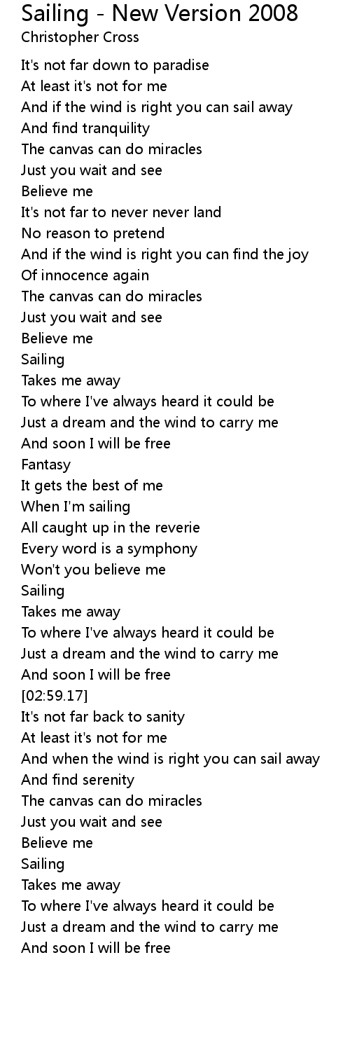 And if the wind is right you can sail away |