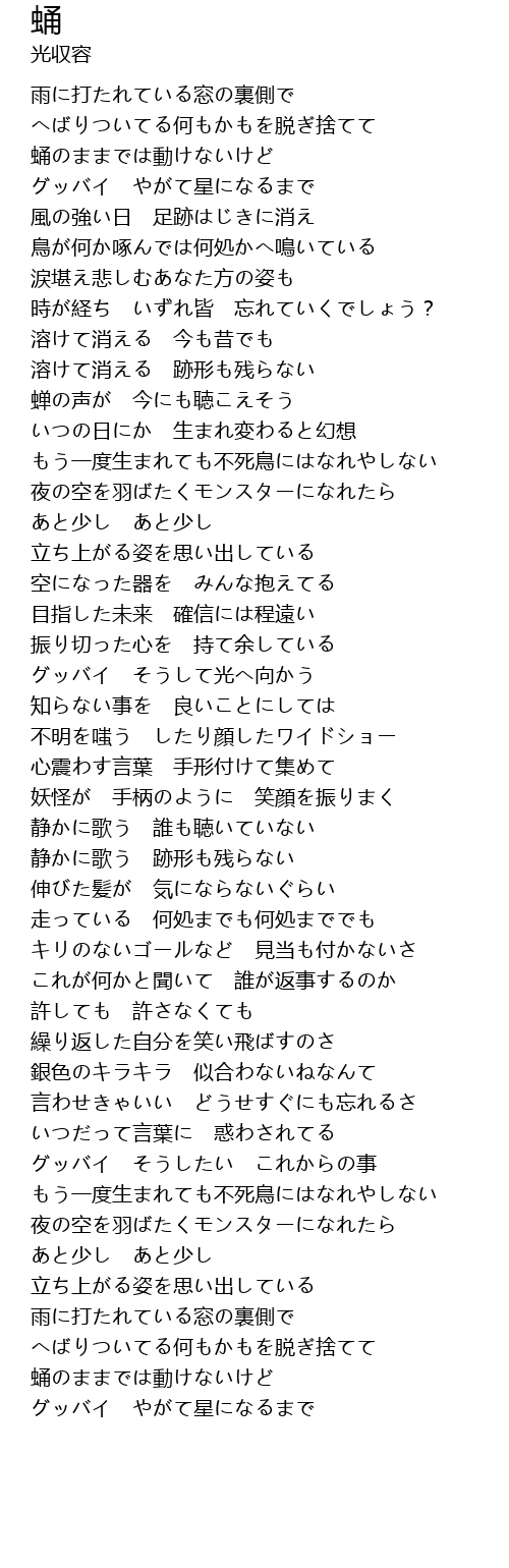 | [02:01.633] | グッバイ そうして光へ向かう |