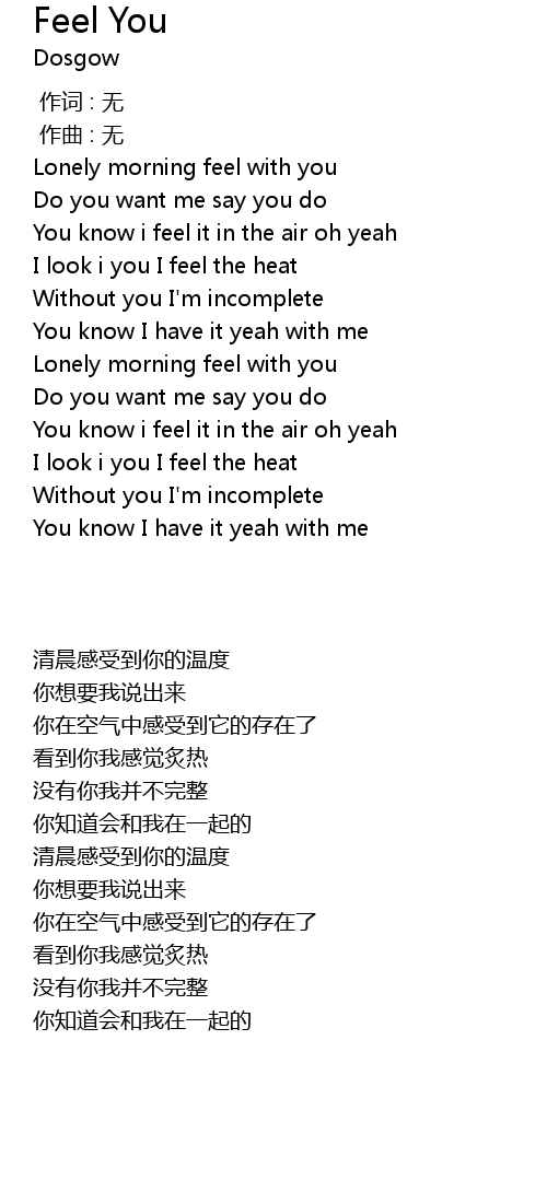 | [00:34.685] | Without you I' m incomplete |
