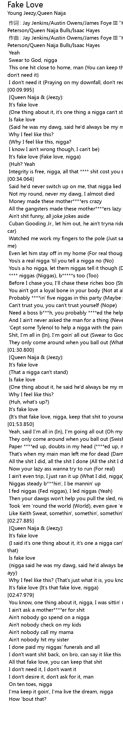 | [01:48.697] | (It's that fake love, nigga, keep that shit to yourself, let's go) |