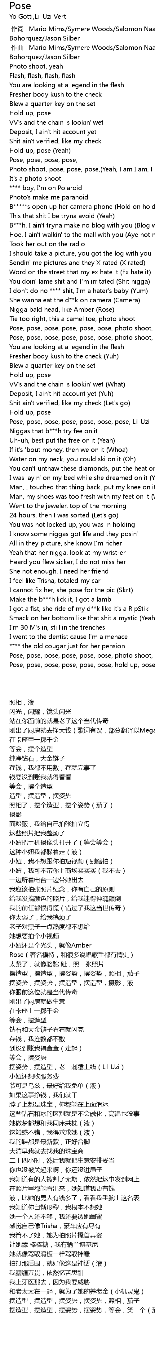 | [01:36.05] | Pose, pose, pose, pose, pose, pose, pose, Lil Uzi |